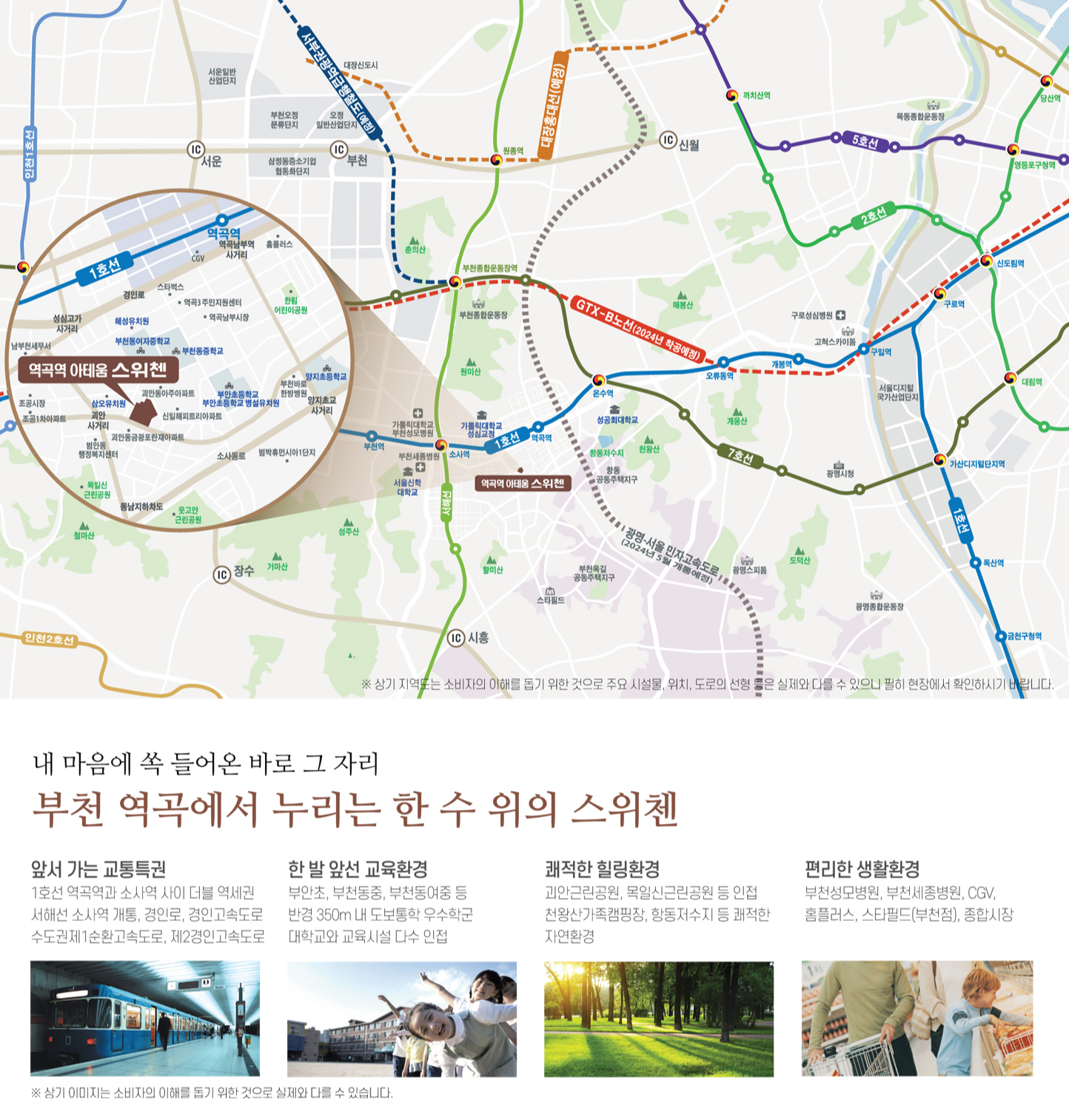 역곡역 아테움 스위첸은 1호선 역곡역과 소사역 더블 역세권으로 소사역이 개통하였으며 경인고속도로, 수도권제1순환고속도로, 제2경인고속도로의 진입이 용이한 쾌속교통망을 자랑합니다.