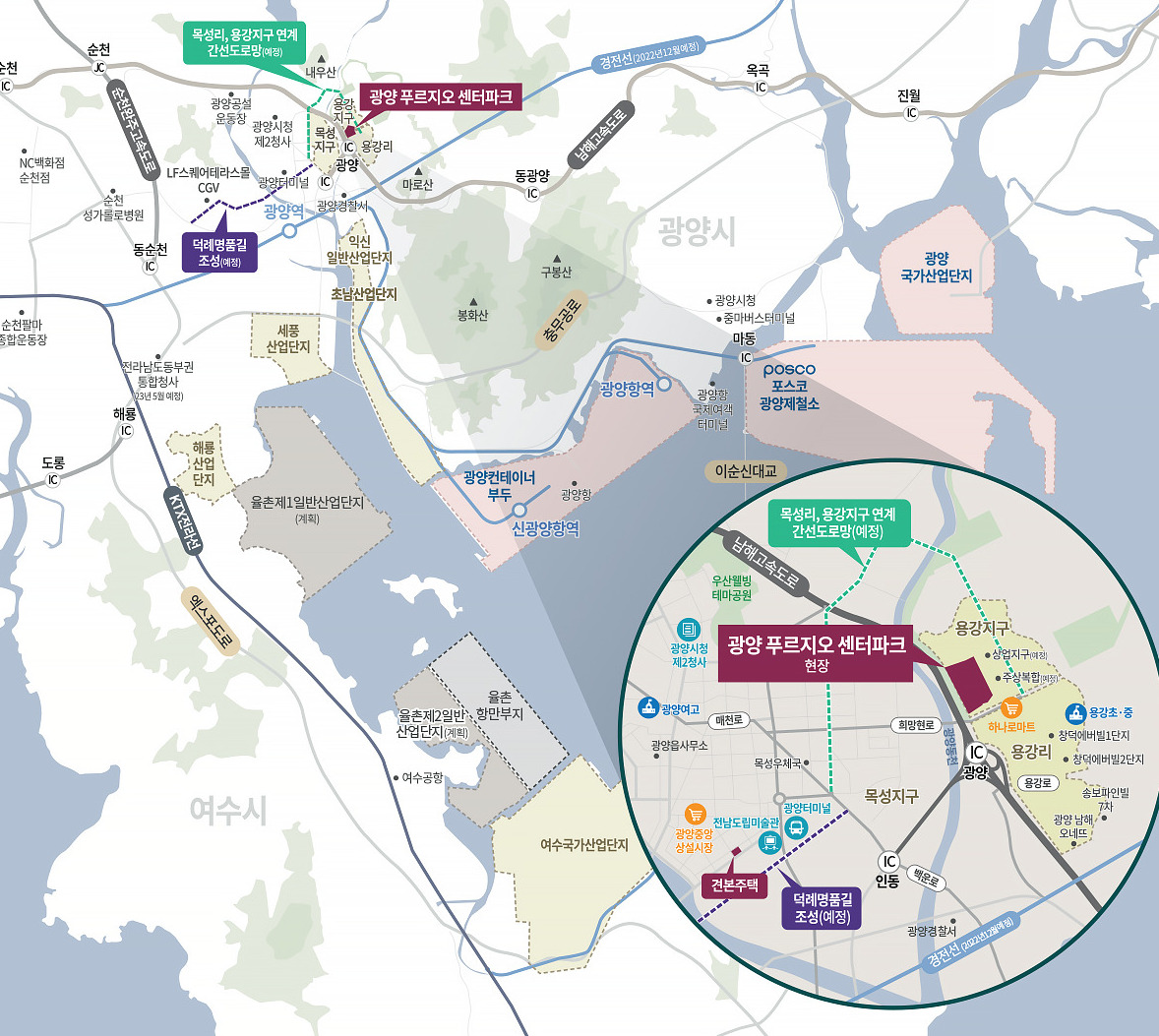 - 교통 여건 : 국도 및 광양IC 진입 용이, 여수·순천 생활권과도 연결