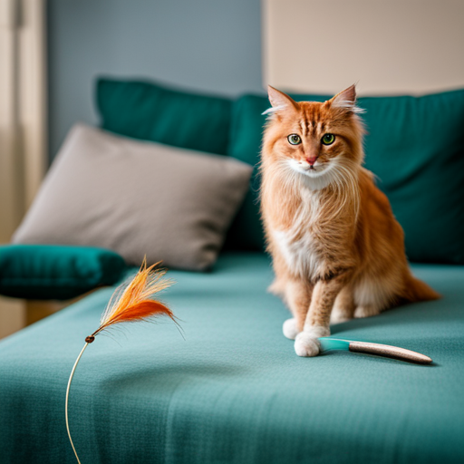 - 장난감 막대기 : 깃털이나 작은 인형이 달려있는 장난감 막대기를 고양이가 예측할 수 없는 방향으로 속도와 높이를 달리하여 이리저리 옮겨주면 고양이의 사냥 본능이 자극되어 매우 활발하게 움직이게 됩니다.