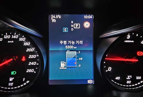 요소수 잔량을 확인하기 위해 계기판을 확인해 보았더니 다행이 아직 몇천킬로미터를 더 달릴 수 있는 양이 남아 있었습니다.
